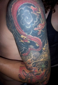 飞翔的红色龙纹身图案