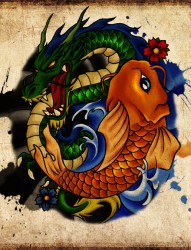 非常好看霸气的鲤鱼和龙纹身手稿