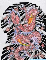 高清日式传统满背龙割线纹身图片作品