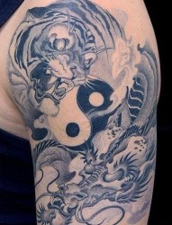 一幅帅气的手臂龙虎斗纹身图片