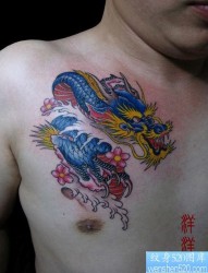 女人喜欢的胸部彩色龙纹身图片