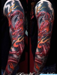 男生手臂潮流经典的花臂龙纹身图片
