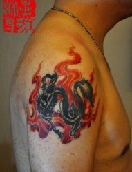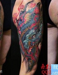 男人手臂帅气好看的图腾龙鱼火焰纹身图片