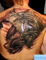 男生背部霸气超酷的欧美龙纹身图片