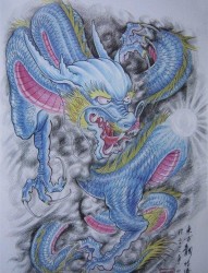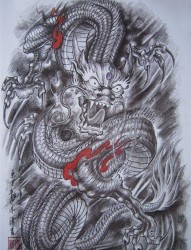 一幅吐龙珠的龙纹身手稿