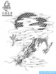 超酷霸气的云雾龙纹身手稿