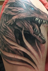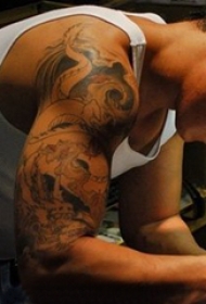 九爪金龙纹身 男生大臂上黑灰的九爪金龙纹身图片
