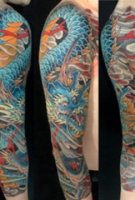 九爪金龙纹身 男生花臂彩绘的九爪金龙纹身图片