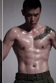 陆毅纹身图 明星肩部黑灰色的龙纹身图片