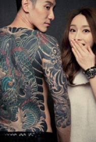 中国纹身明星 王阳明满背彩绘的龙纹身图片