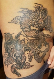 飞龙纹身图 男生腹部黑色的飞龙纹身图片