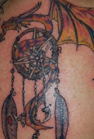 捕梦网纹身图 女生后背上捕梦网和飞龙纹身图片
