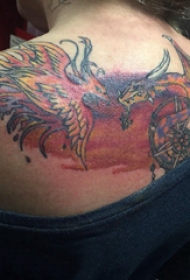 纹身火凤凰 女生后背火凤凰和飞龙纹身图片