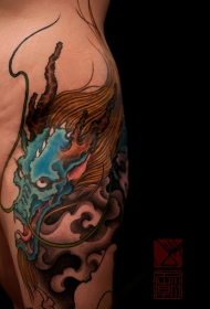 大臂内侧彩色的亚洲武士与龙纹身图案