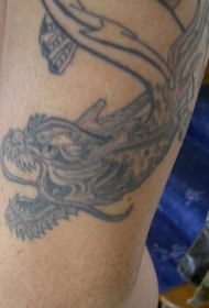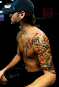 女生大臂华丽的亚洲艺妓结合幻想龙纹身图案