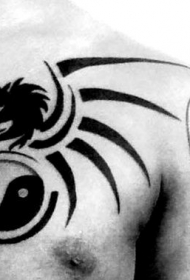 胸部黑色的亚洲阴阳符号和龙图腾纹身图案