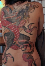 女生满背惊艳的的亚洲幻想龙纹身图案