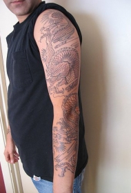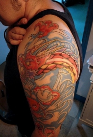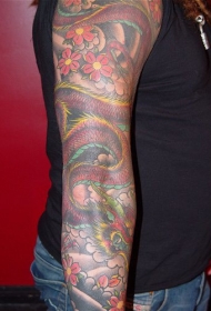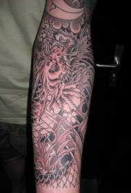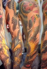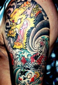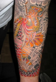 手臂彩色的锦鲤和亚洲龙纹身图案