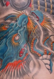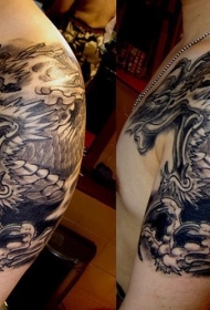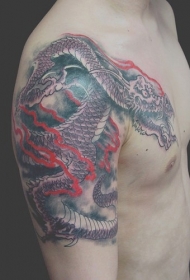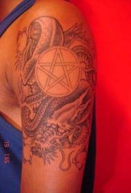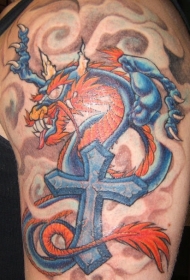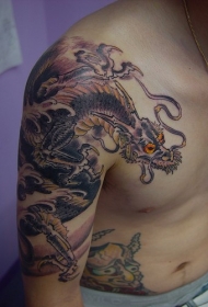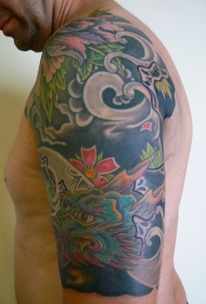 手臂智慧的亚洲龙和莲花彩色纹身图案
