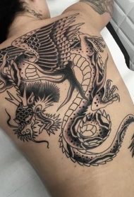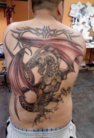 背部令人毛骨悚然的龙和蝙蝠纹身图案