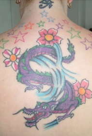 背部花朵和星星龙彩色纹身图案