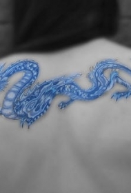 背部精美的蓝色龙纹身图案