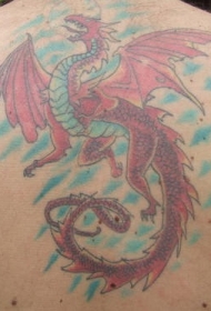 满背彩色的飞翔龙纹身图案