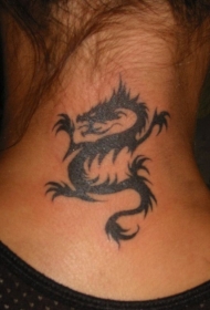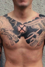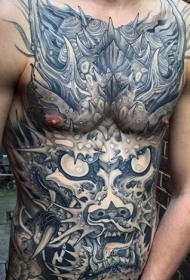 胸部和腹部奇特的黑色幻想龙纹身图案
