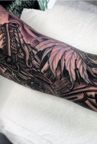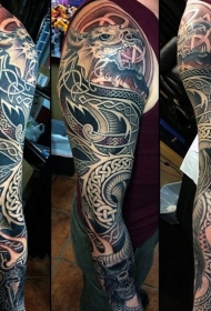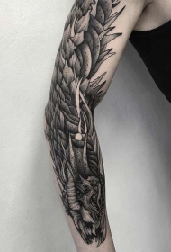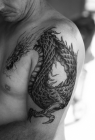 大臂幻想风格黑灰凯尔特龙纹身图案