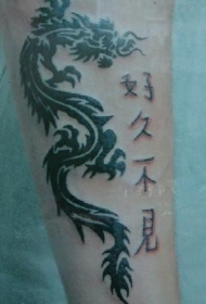 手臂凯尔特风格黑灰幻想龙纹身图案