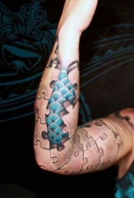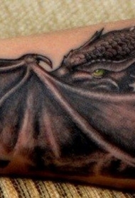 手臂不寻常的黑灰拼图与龙皮结合纹身图案