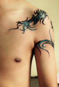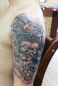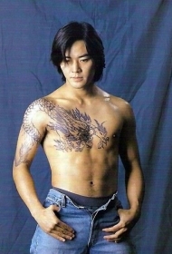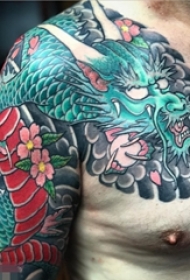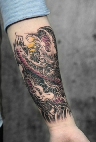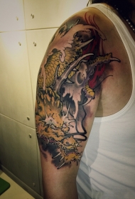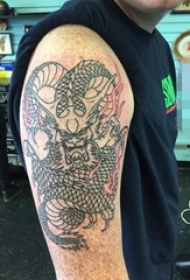 金龙腾飞,大臂黄金神龙彩绘纹身