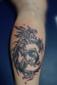 手臂上纹身黑白灰风格几何元素纹身简单个性线条纹身龙动物纹身图片