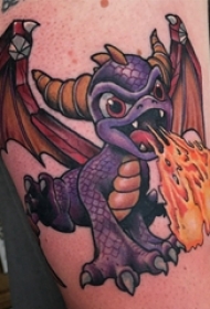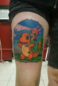 纹身大腿男 男生大腿上彩色的小火龙纹身图片