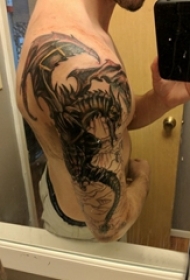 大臂纹身图 男生大臂上黑色的龙纹身图片
