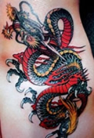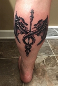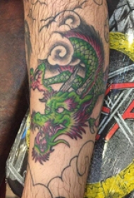飞龙纹身图 男生小腿上飞龙纹身图案