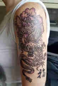 双大臂纹身 男生大臂上牡丹和龙纹身图片