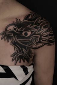 肩膀简约纹身 女生肩部黑色的龙纹身图片