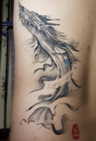 飞龙纹身图 男生侧肋上飞龙纹身图案