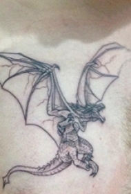 飞龙纹身图 男生胸部黑灰纹身素描飞龙纹身图案