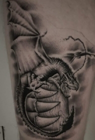 纹身大腿男 男生大腿上黑色的飞龙纹身图片