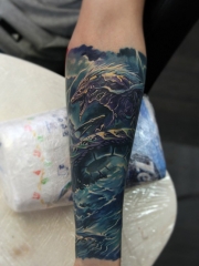 手臂霸气的海龙彩绘纹身图案