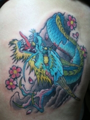 肩部个性的青龙蟒蛇和凤尾纹身图案