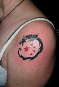 女人手臂小巧的图腾龙与五角星纹身图案