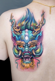 后背幻彩龙头创意纹身图案