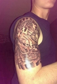 男性霸气半甲龙虎斗纹身图案