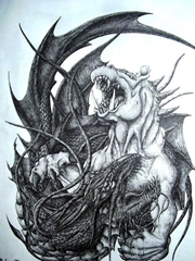 富有立体感的人物和死神纹身动物小恐龙纹身图案