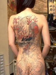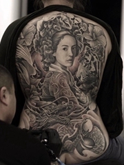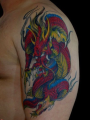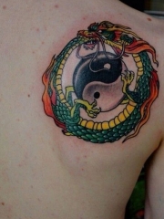 中国传统彩绘龙阴阳八卦背部纹身图案