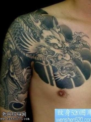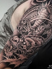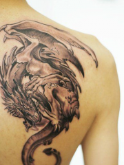 男性后肩背经典超酷的黑白欧美龙刺青作品