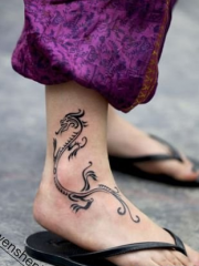 女孩子脚踝处的简单个性图腾龙纹身图案